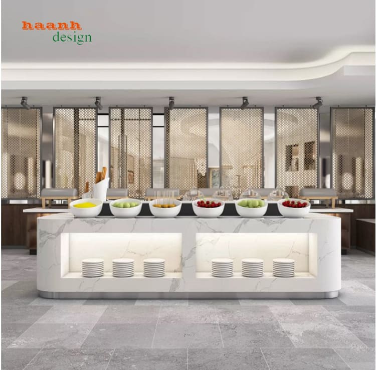 Tổng thể bàn buffet cao cấp thiết kế hiện đại cho nhà hàng – khách sạn