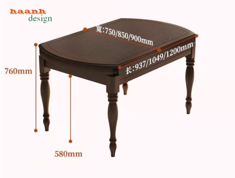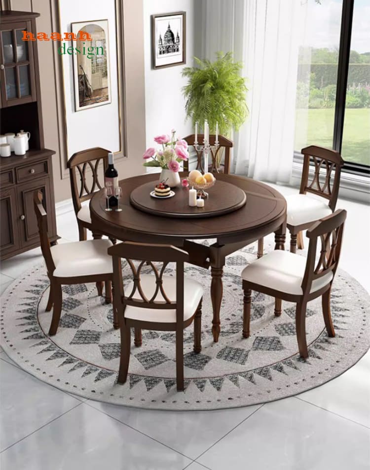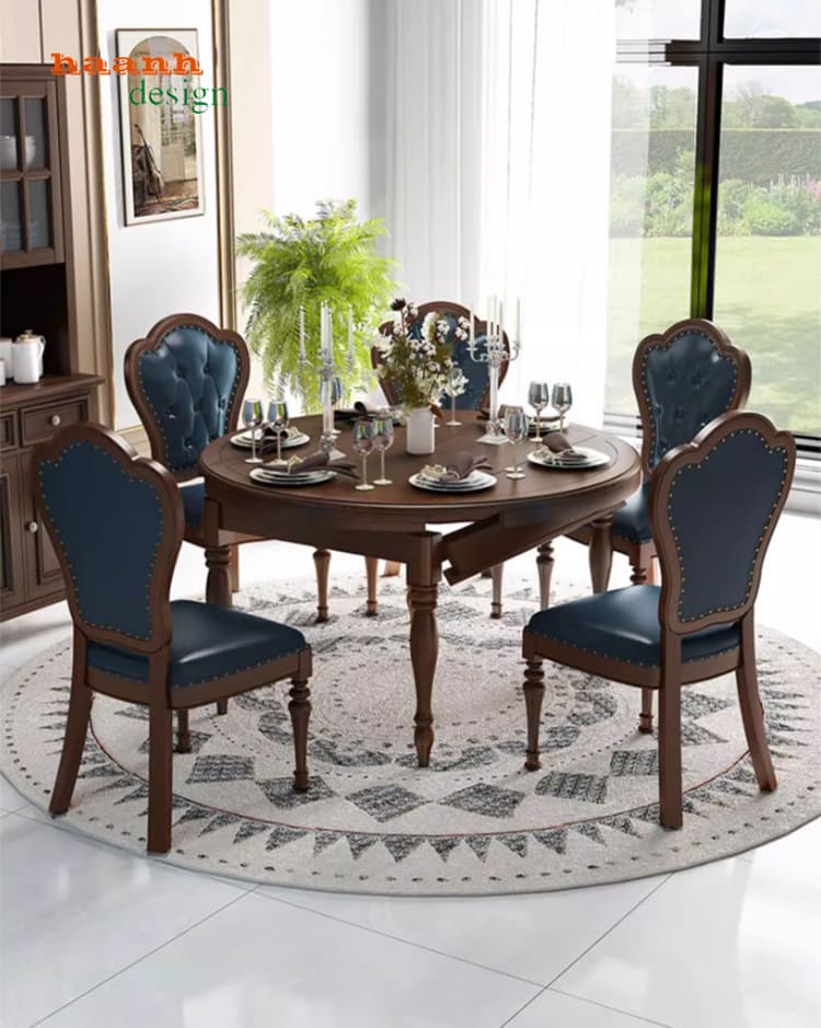 Thiết kế bàn ăn mở rộng linh hoạt của bàn ghế ăn gỗ tân cổ điển