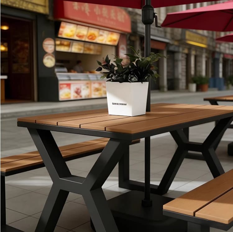 Tại các khu nghỉ dưỡng hoặc khu vui chơi ngoài trời, bàn chân sắt mặt gỗ là giải pháp tối ưu nhờ: