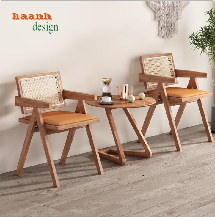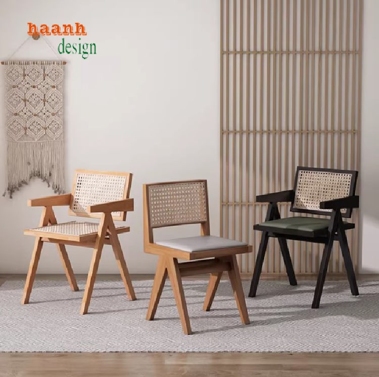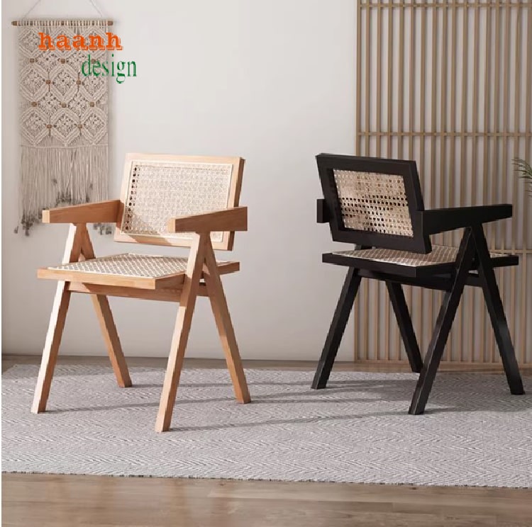Mặt ghế mây đan thủ công tạo cảm giác nhẹ nhàng và ấm cúng.
