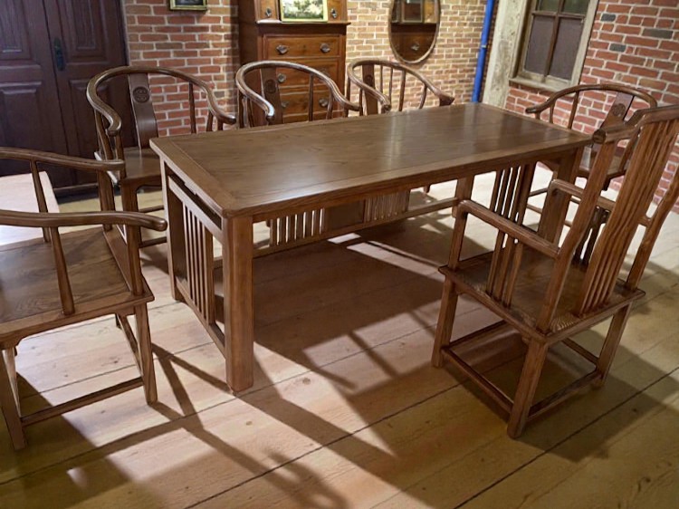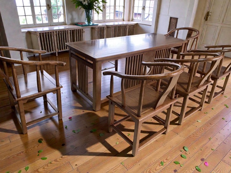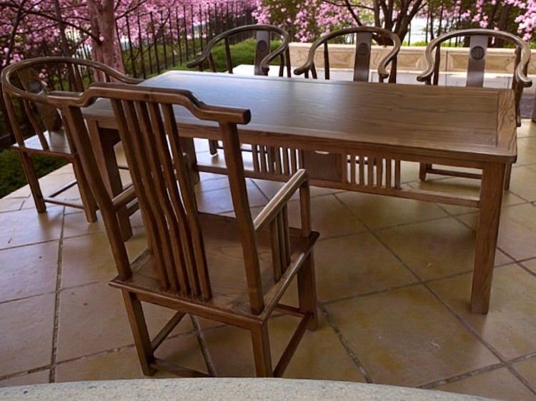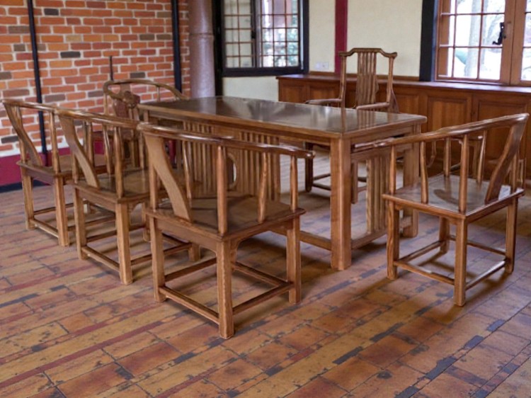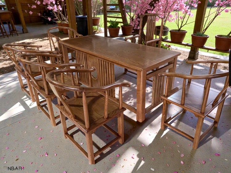 Mẫu bàn ghế phòng trà gỗ sồi tự nhiên nhập khẩu Nga, thiết kế Á Đông tinh tế