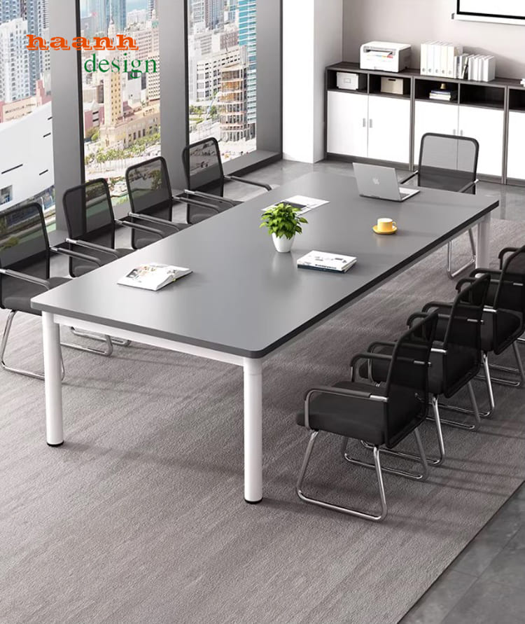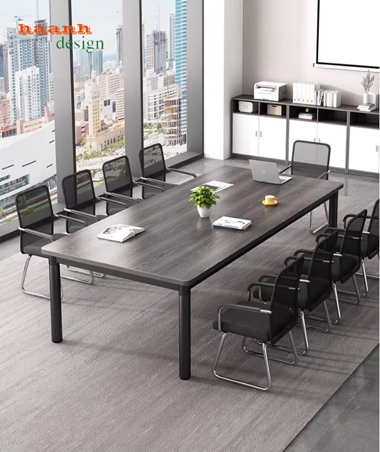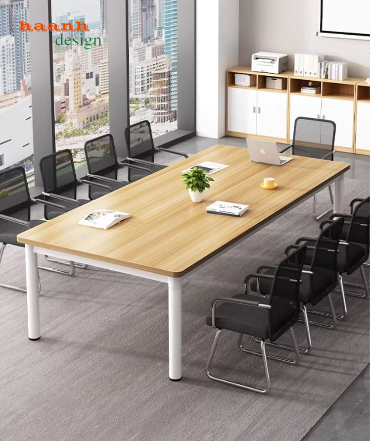 Bàn hội nghị chân sắt mặt gỗ được thiết kế theo phong cách hiện đại: