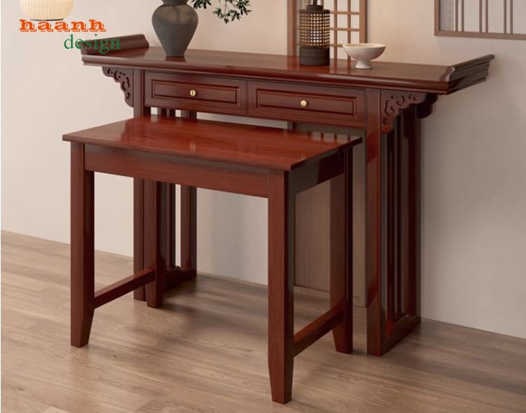 Không gian thờ cúng là nơi linh thiêng và trang trọng nhất trong mỗi gia đình Việt. Việc lựa chọn một bàn thờ gia tiên đẹp không chỉ thể hiện lòng hiếu kính mà còn góp phần tạo nên phong thái uy nghi, hài hòa cho tổng thể phòng thờ. Trong bài viết này, chúng tôi giới thiệu dòng bàn thờ gỗ gụ tự nhiên nhập khẩu Lào, thiết kế hai tầng hiện đại, mang đến sự bền bỉ, sang trọng và phong thủy vượng khí.
