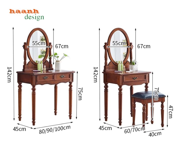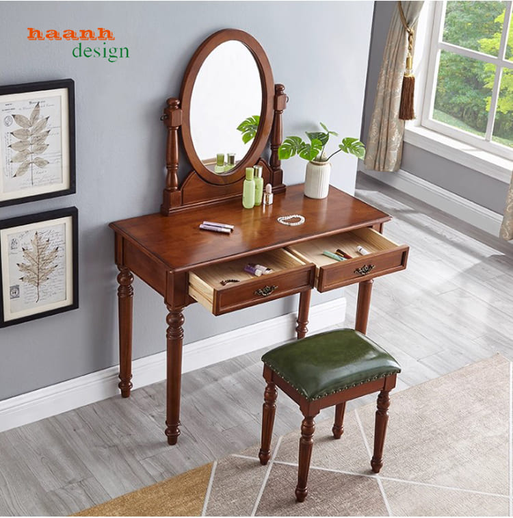 Bàn trang điểm cao cấp – lựa chọn hoàn hảo dành cho không gian phòng ngủ sang trọng, khẳng định đẳng cấp thẩm mỹ tinh tế và gu nội thất hoàn mỹ của gia chủ. Sở hữu thiết kế tân cổ điển châu Âu, sử dụng gỗ sồi tự nhiên nhập khẩu Nga hoặc Mỹ và phủ sơn PU Inchem cao cấp của Mỹ, mẫu sản phẩm mang đến vẻ đẹp quyền quý, bền bỉ và thanh lịch theo thời gian. Với nhu cầu ngày càng tăng về bàn trang điểm, bàn trang điểm gỗ, bàn trang điểm đẹp, bộ bàn trang điểm, đây chắc chắn là lựa chọn lý tưởng cho những ai yêu thích phong cách xa hoa, sang trọng.