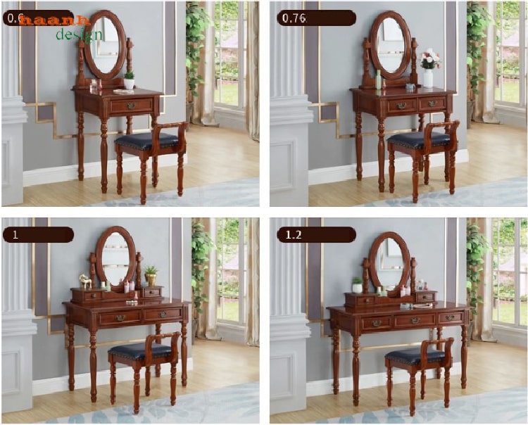 Khi lựa chọn bàn trang điểm gỗ tự nhiên, bạn không chỉ đầu tư cho một món đồ nội thất, mà còn mang lại sự tiện nghi và sang trọng cho căn phòng. Với phong cách tân cổ điển châu Âu, sản phẩm phù hợp với nhiều gu thẩm mỹ khác nhau, từ nhẹ nhàng, tinh tế cho đến sang trọng, quyền quý.