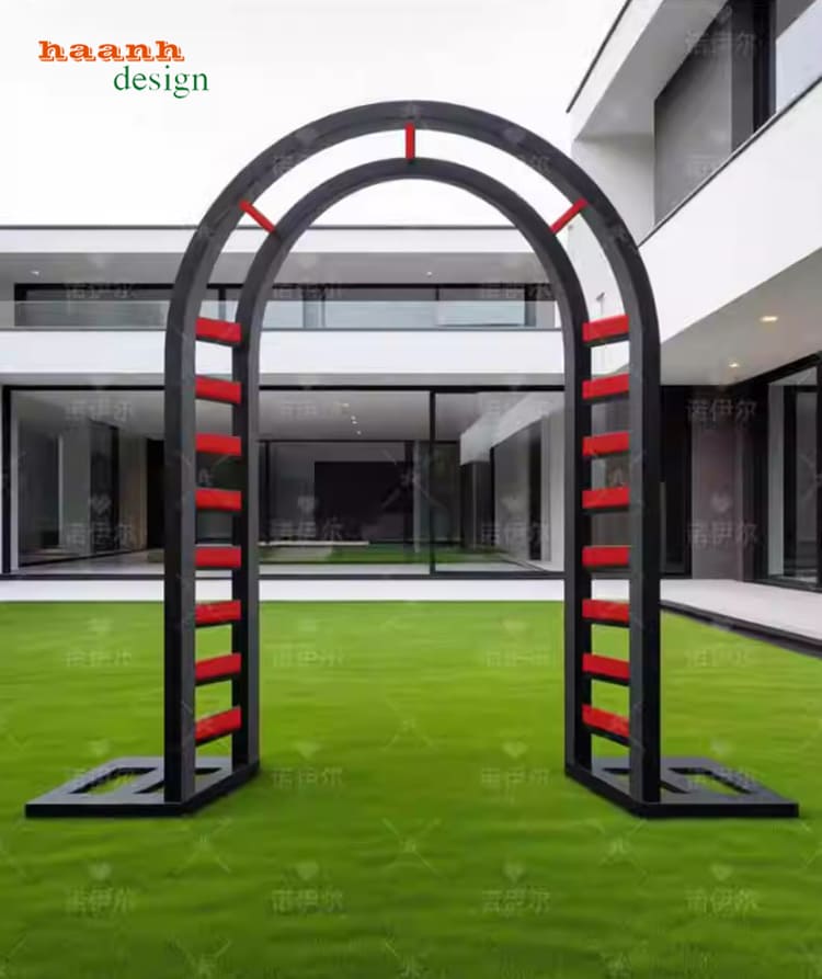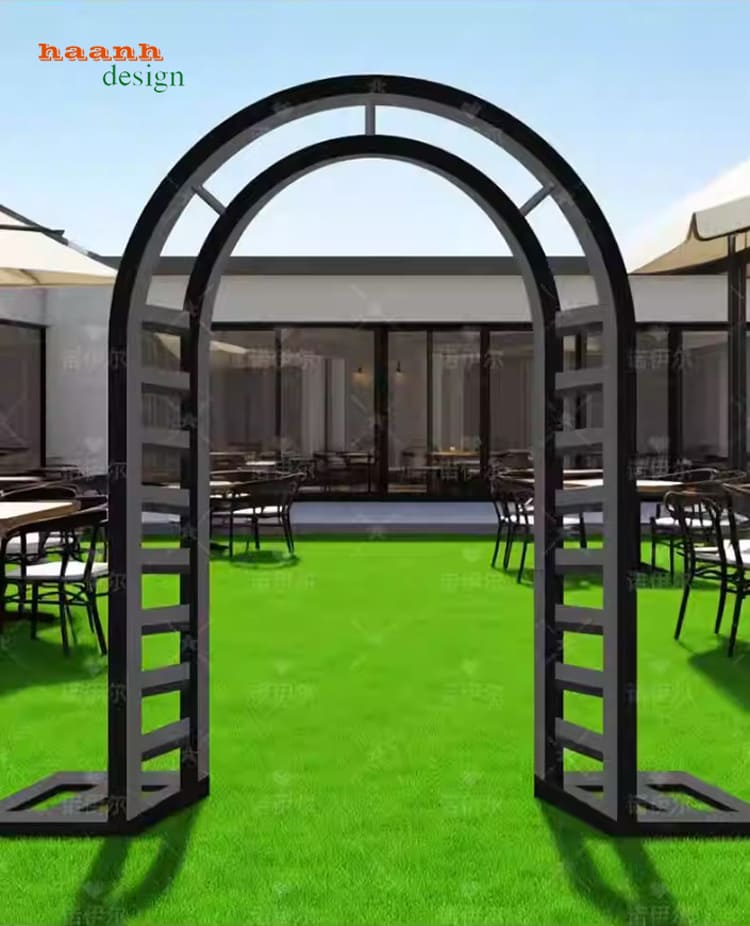 Trong các khu resort hoặc sân vườn, vòm cổng sắt đẹp được dùng làm điểm nhấn chụp ảnh, cổng chào hoặc lối đi lãng mạn. Khi kết hợp cùng cây leo hoặc đèn trang trí, cổng trở thành không gian nghệ thuật thu hút mọi ánh nhìn.