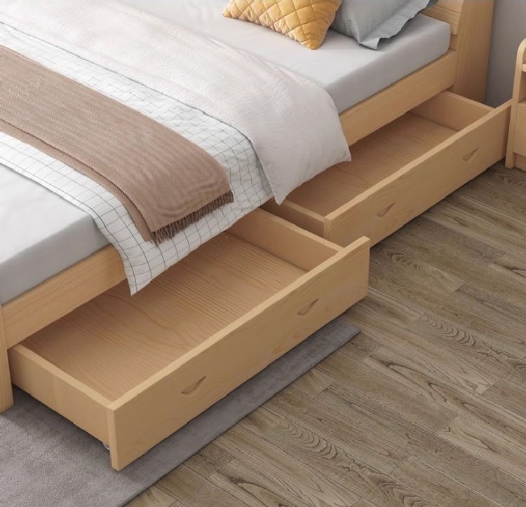Một trong những lý do khiến giường gỗ công nghiệp có ngăn kéo được ưa chuộng là khả năng tiết kiệm diện tích. Với các ngăn kéo rộng rãi, bạn có thể dễ dàng cất trữ quần áo, chăn ga, gối đệm hoặc các vật dụng cá nhân, giúp phòng ngủ luôn gọn gàng.