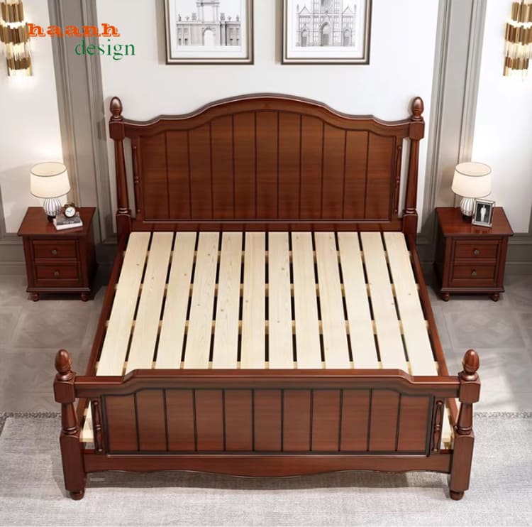 Mẫu giường nhà nghỉ đẹp bằng gỗ tự nhiên