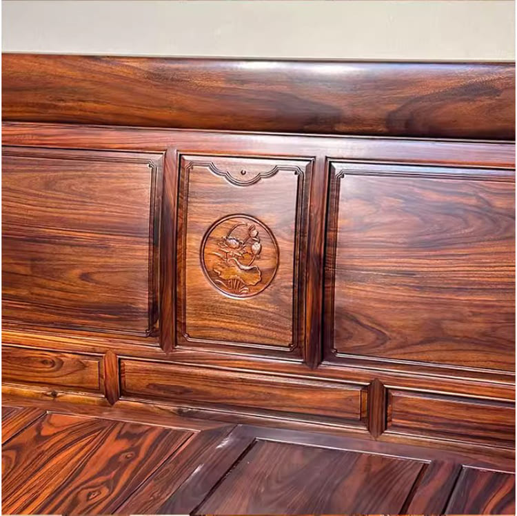 Giường ngủ gỗ mun giả cổ hoàn thiện, sẵn sàng bàn giao.
