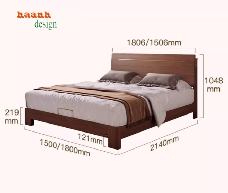 Giường ngủ gỗ tự nhiên cao cấp là lựa chọn lý tưởng cho những ai yêu thích sự bền đẹp, sang trọng và hiện đại. Được làm từ gỗ sồi tự nhiên nhập khẩu Nga kết hợp gỗ flywood phủ veneer sồi, xử lý chống cong vênh, mối mọt, phủ sơn PU mờ 75% Inchem Mỹ màu giả óc chó giữ nguyên vân gỗ, cùng phụ kiện Hafele Đức cao cấp. Thiết kế tinh giản, sản xuất bằng công nghệ hiện đại, mang lại chất lượng vượt trội.