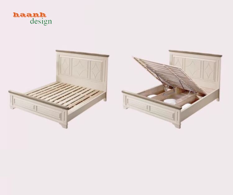 Thiết kế giường tân cổ điển là sự kết hợp hài hòa giữa đường nét mềm mại của phong cách cổ điển và sự tối giản của phong cách hiện đại. Từng đường chạm khắc tinh xảo ở đầu giường, chân giường thể hiện sự khéo léo của người thợ thủ công, mang đến cảm giác sang trọng, quý phái cho không gian phòng ngủ.