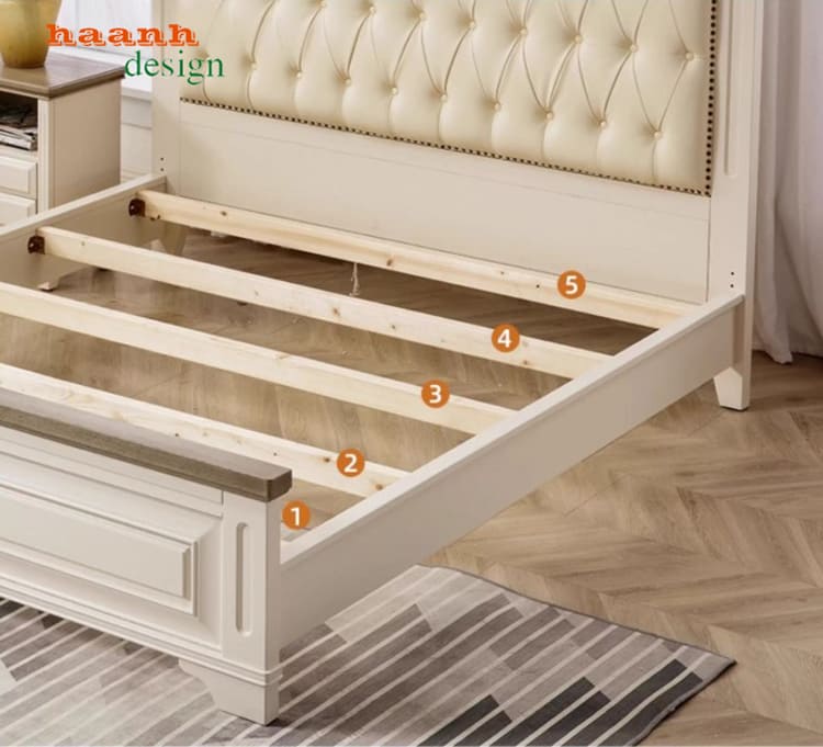 Không chỉ chú trọng đến thẩm mỹ, mẫu giường ngủ tân cổ điển cao cấp còn được tối ưu về công năng. Kích thước tiêu chuẩn, khung giường chắc chắn giúp nâng đỡ cơ thể tối đa, mang lại giấc ngủ sâu và êm ái.