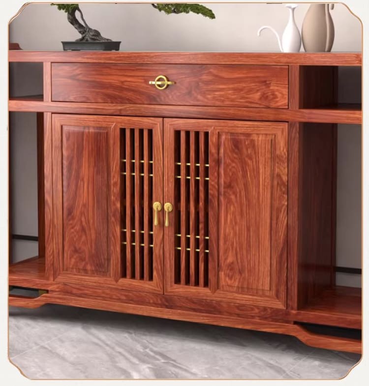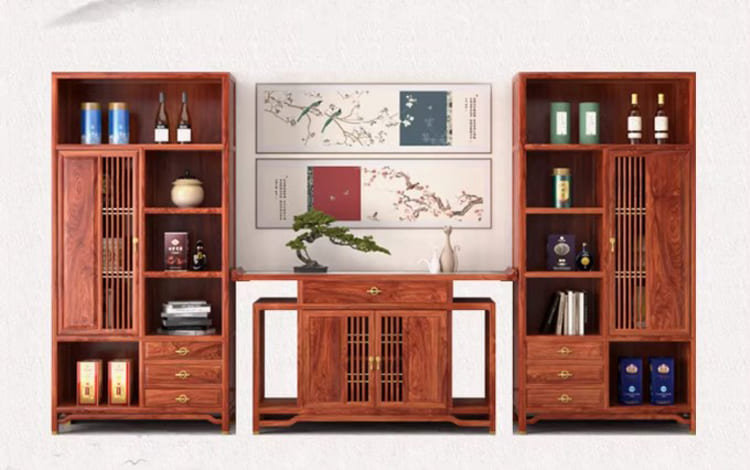 Chính vì vậy, các kệ tủ trang trí phòng khách từ gỗ hương không chỉ đẹp mà còn mang giá trị sử dụng lâu dài.