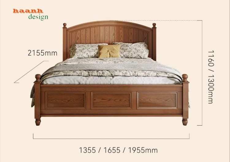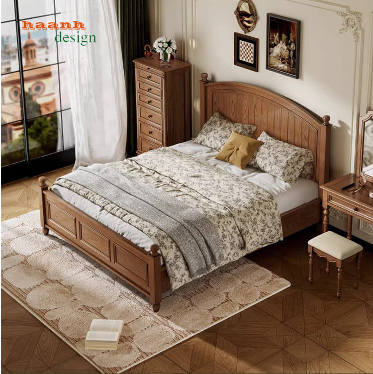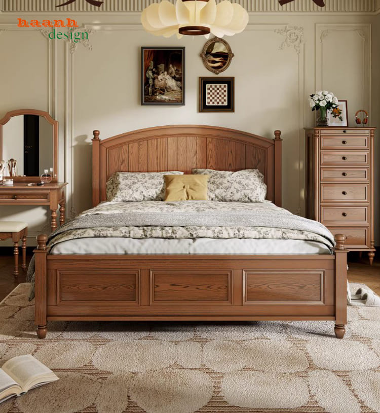 Khung giường gỗ sồi tự nhiên chắc chắn, bền bỉ