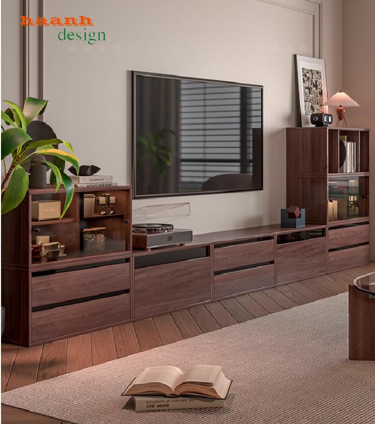 Kệ tivi gỗ công nghiệp flywood phủ veneer óc chó tự nhiên, sang trọng và tinh tế.