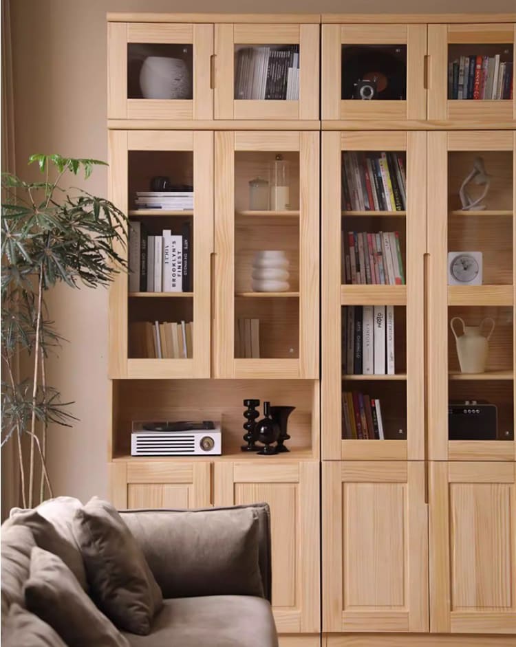 Kết hợp cùng đó là gỗ flywood ở các đợt tủ và mặt hồi, giúp tăng độ ổn định, hạn chế co ngót và nâng cao tuổi thọ cho tủ sách gỗ sồi tự nhiên trong điều kiện sử dụng lâu dài.