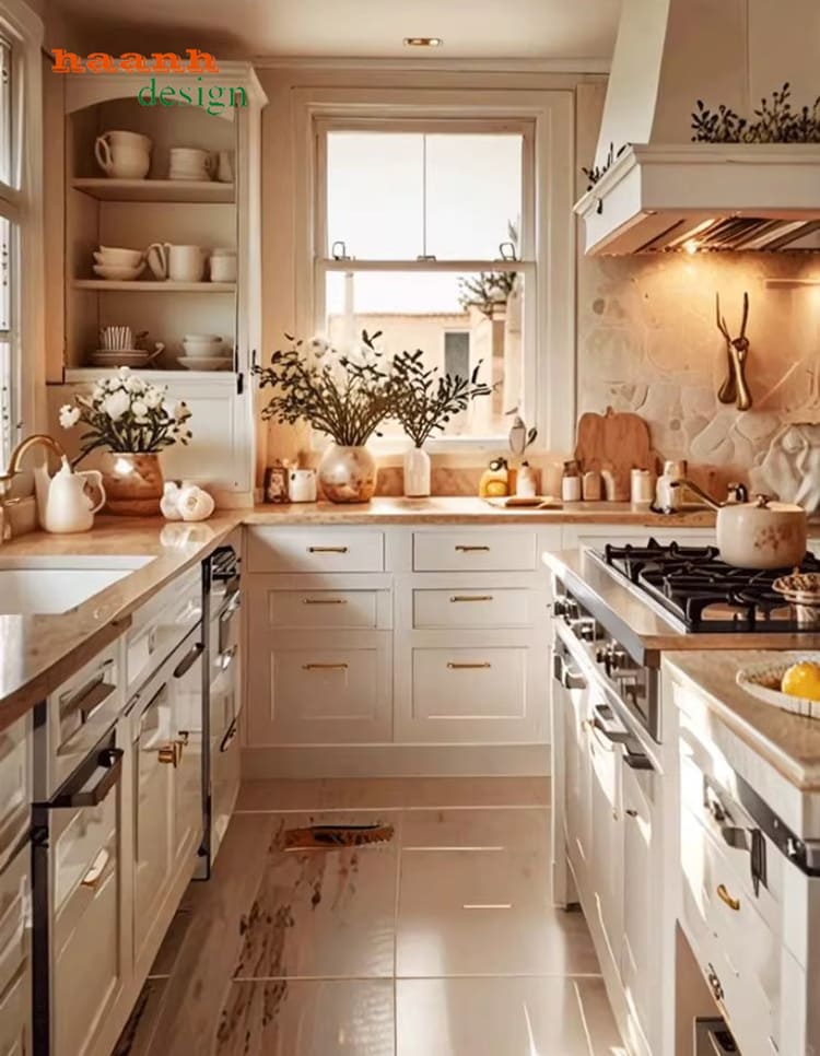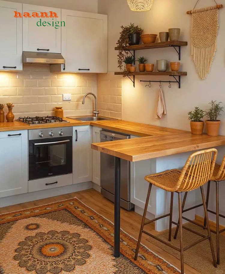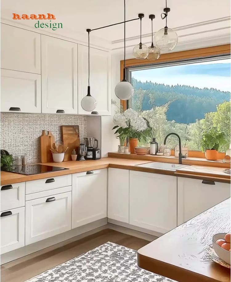 Mẫu **bếp gỗ công nghiệp** thiết kế chữ L