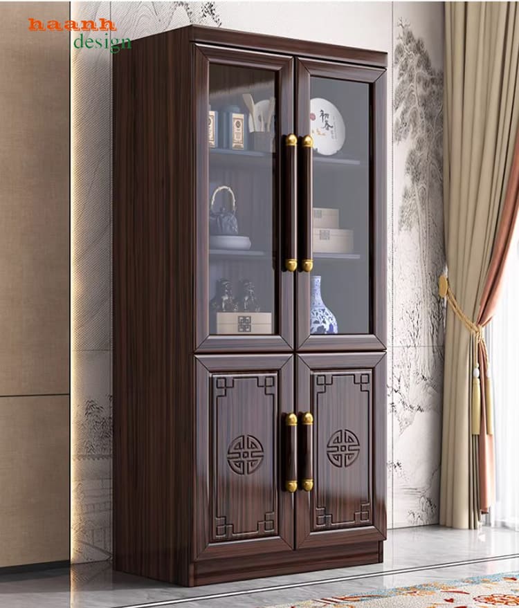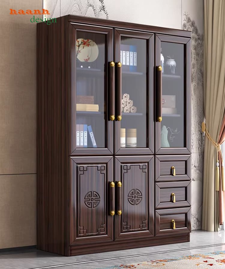 Với phong cách Á Đông cánh chạm tinh xảo, mẫu tủ đựng sách bằng gỗ này mang đến sự kết hợp hài hòa giữa truyền thống và hiện đại.
