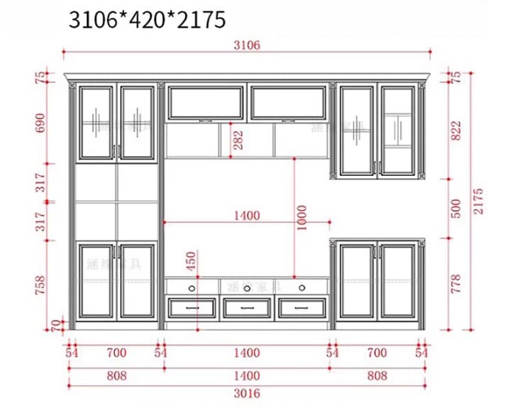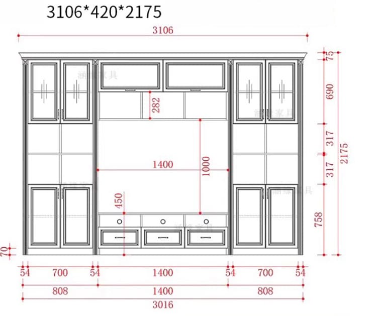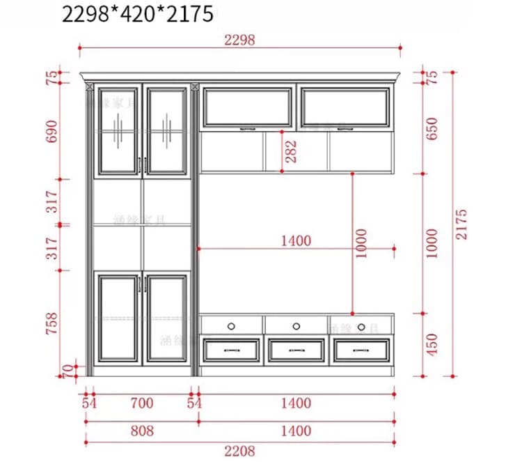 Một trong những ưu điểm nổi bật của tủ tường phòng khách là thiết kế liền khối: