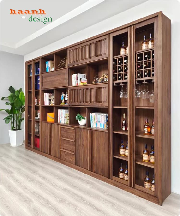 Tủ sách gia đình được thiết kế theo phong cách hiện đại với: