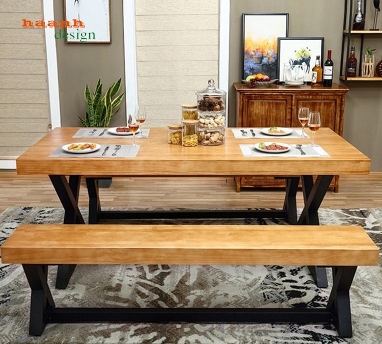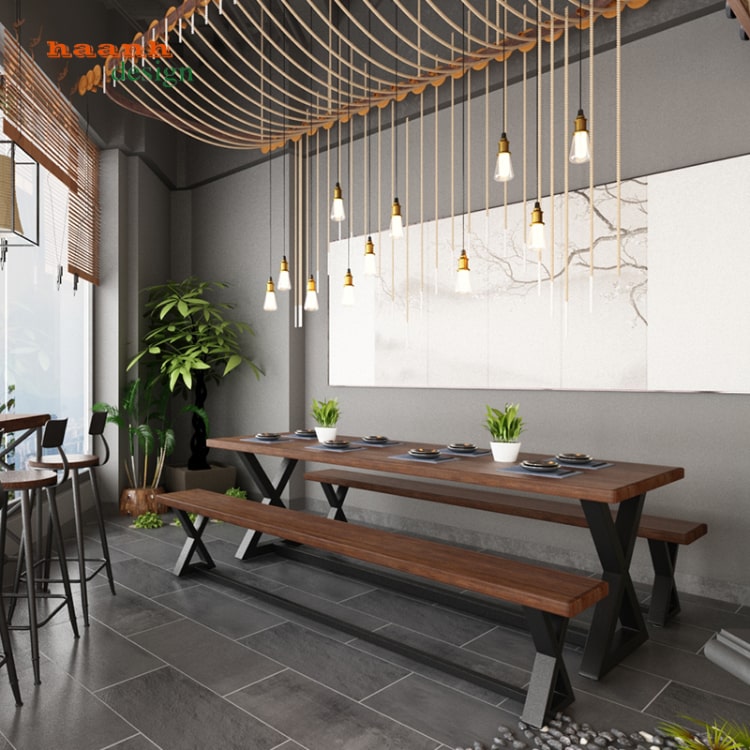 Màu sắc và hoàn thiện: Lựa chọn màu sắc và hoàn thiện cho bàn và ghế sao cho phù hợp với màu sắc tổng thể của phòng ăn. Ví dụ, bạn có thể sơn khung sắt đen hoặc trắng để tạo sự tương phản với màu gỗ tự nhiên.