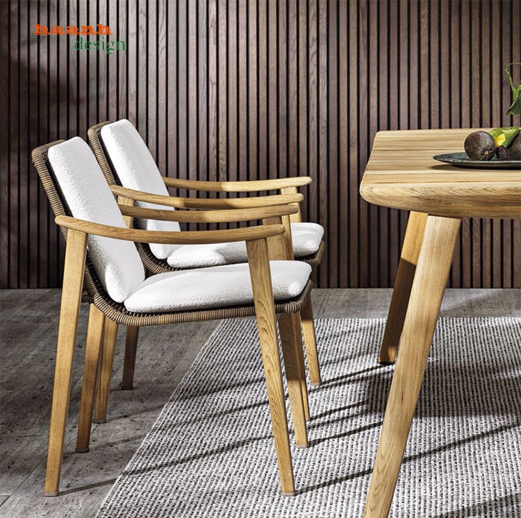 Ngay từ ánh nhìn đầu tiên, hình ảnh bàn ghế gỗ teak hiện lên với thiết kế vô cùng hiện đại và trẻ trung. Với việc sử dụng chất liệu gỗ teak tạo cho bộ bàn ghế sự vững chãi và chắc chắn. Mẫu bàn ghế này có thiết kế tối giản, mang đến cảm giác vô cùng thoải mái và yên bình cho người dùng.