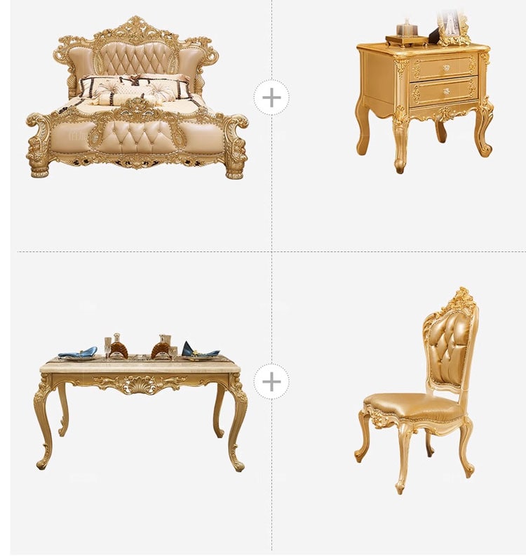 Chi tiết tay cầm và chân ghế: Các chi tiết như tay cầm mạ vàng, chân ghế uốn lượn, và các họa tiết chạm khắc thường được sử dụng để thêm sự phong cách và sang trọng vào sản phẩm.