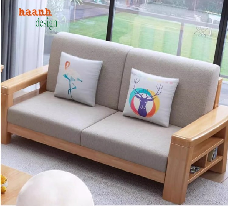 Sofa gỗ sồi tự nhiên nổi bật với đường vân gỗ rõ nét, màu sắc trầm ấm phù hợp nhiều phong cách nội thất.