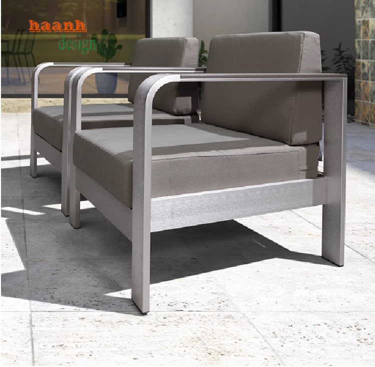 Sự kết hợp giữa khung sắt mạnh mẽ và đệm vải mềm mại mang lại vẻ đẹp hài hòa, tạo cảm giác vừa khỏe khoắn vừa tinh tế cho không gian ngoài trời.