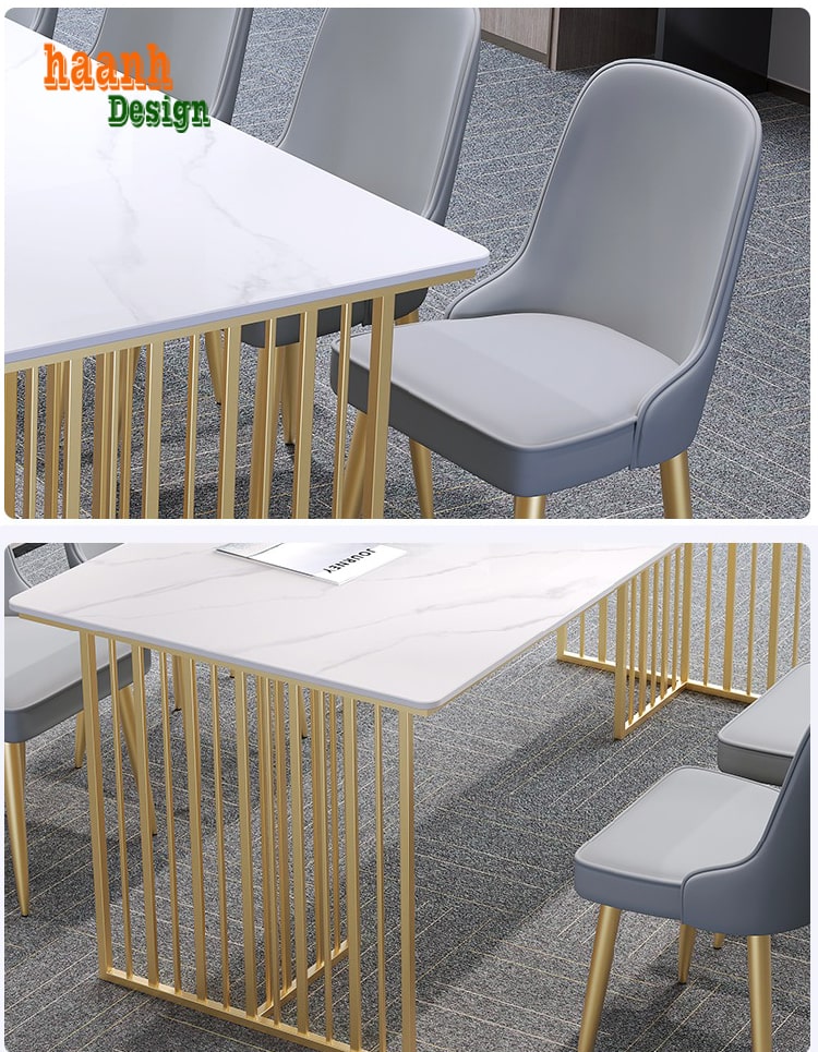 Bàn họp chân sắt không chỉ mạnh mẽ mà còn rất đẹp mắt. Với nhiều mẫu mã và kiểu dáng khác nhau, bạn có thể dễ dàng tìm thấy một chiếc bàn phù hợp với phong cách nội thất của văn phòng. Những chiếc bàn có mặt kính trong suốt hoặc mặt gỗ tự nhiên mang đến vẻ đẹp sang trọng và hiện đại, tạo cảm giác chuyên nghiệp cho không gian làm việc.