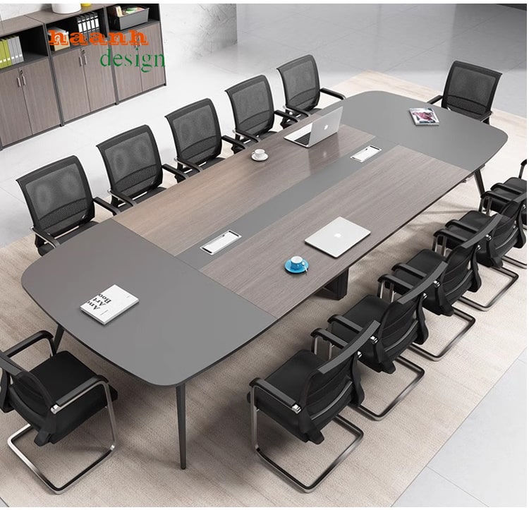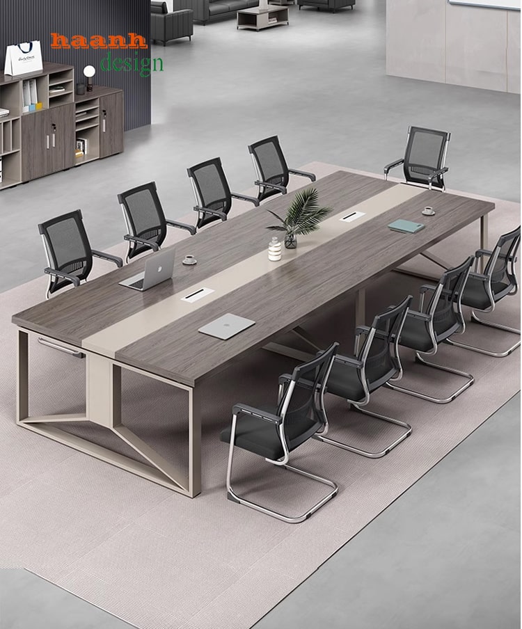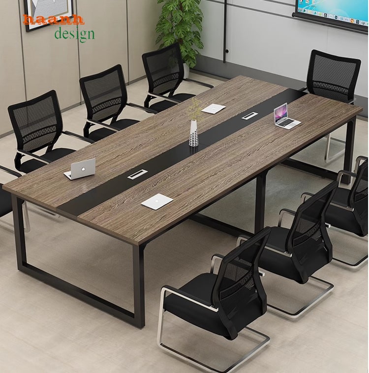 Bàn họp chân sắt mặt gỗ công nghiệp là loại bàn họp được thiết kế với chân sắt và mặt bàn làm từ gỗ công nghiệp. Đây là một loại bàn phổ biến trong không gian văn phòng, hội thảo, cuộc họp và các môi trường làm việc khác. Điều này là do sự kết hợp giữa vẻ đẹp và tính chất chắc chắn của chất liệu gỗ với tính linh hoạt và độ bền của chân bàn làm từ sắt.