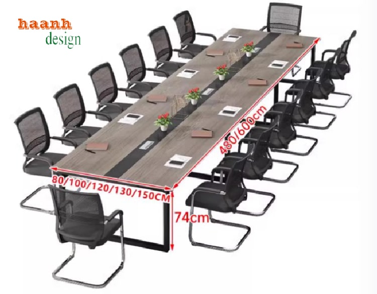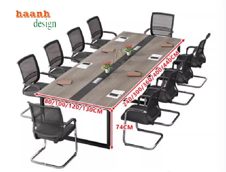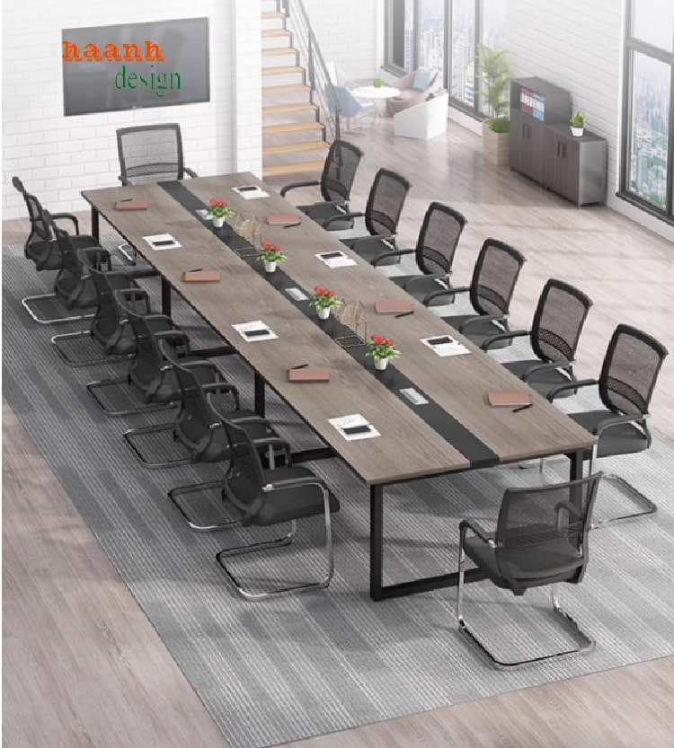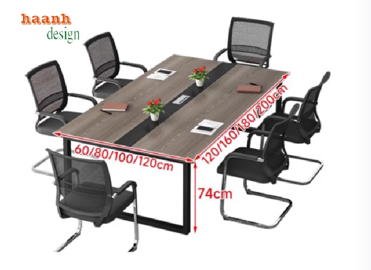 Bàn họp văn phòng chân sắt được thiết kế với khung chân bằng sắt chắc chắn, mang lại độ bền cao và khả năng chịu lực tốt. Điều này rất quan trọng trong môi trường làm việc, nơi có nhiều hoạt động diễn ra hàng ngày. Mặt bàn thường được làm từ gỗ công nghiệp hoặc gỗ tự nhiên, tạo cảm giác sang trọng và gần gũi.