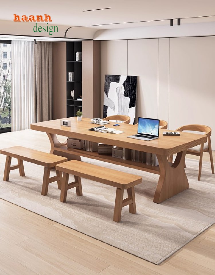 Bàn họp gỗ sồi tự nhiên nhập khẩu, bền đẹp theo thời gian