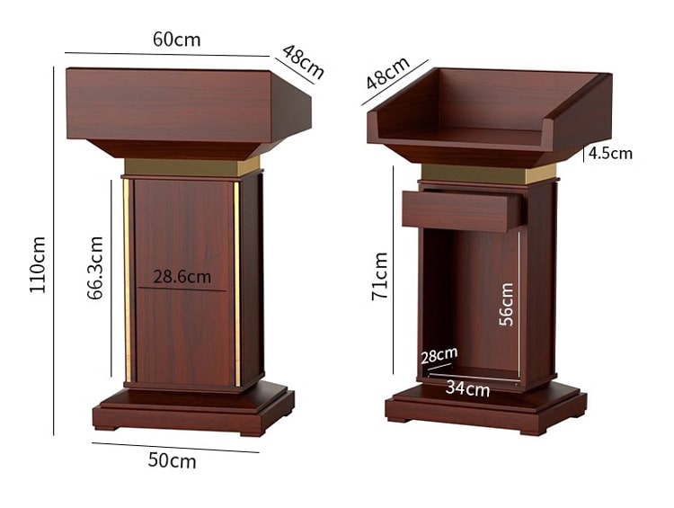 Cấu trúc và chất liệu: Chọn loại gỗ tự nhiên hay gỗ công nghiệp có chất lượng tốt và bền, cùng với cấu trúc chắc chắn để đảm bảo tính ổn định của bục phát biểu. Mang nhiều tiện ích cho người sử dụng.