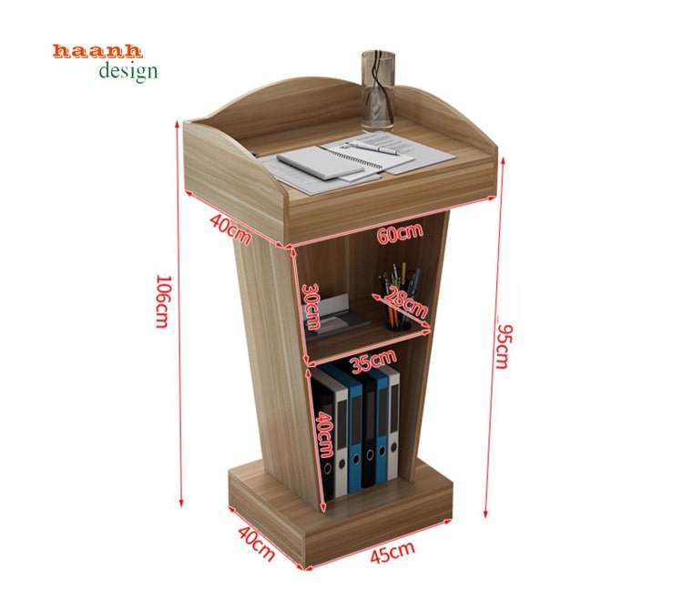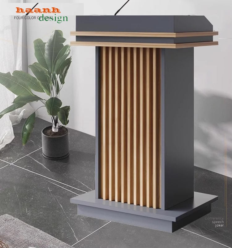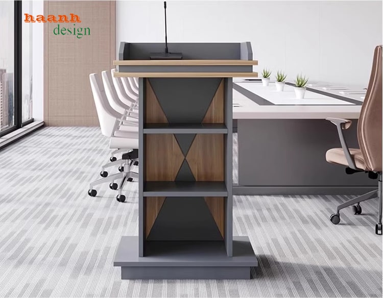 Bục phát biểu hội trường thường được thiết kế với kích thước lớn và có thể chứa được nhiều người đứng trên đó. Với chất liệu gỗ tự nhiên hoặc gỗ công nghiệp, Bục phát biểu hội trường thường được gia công tỉ mỉ và có tính thẩm mỹ cao.