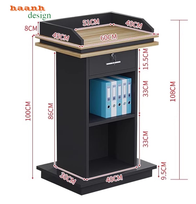 Bục phát biểu có thể được tùy chỉnh về kích thước, kiểu dáng và chất liệu để phù hợp với không gian sử dụng và yêu cầu của khách hàng.