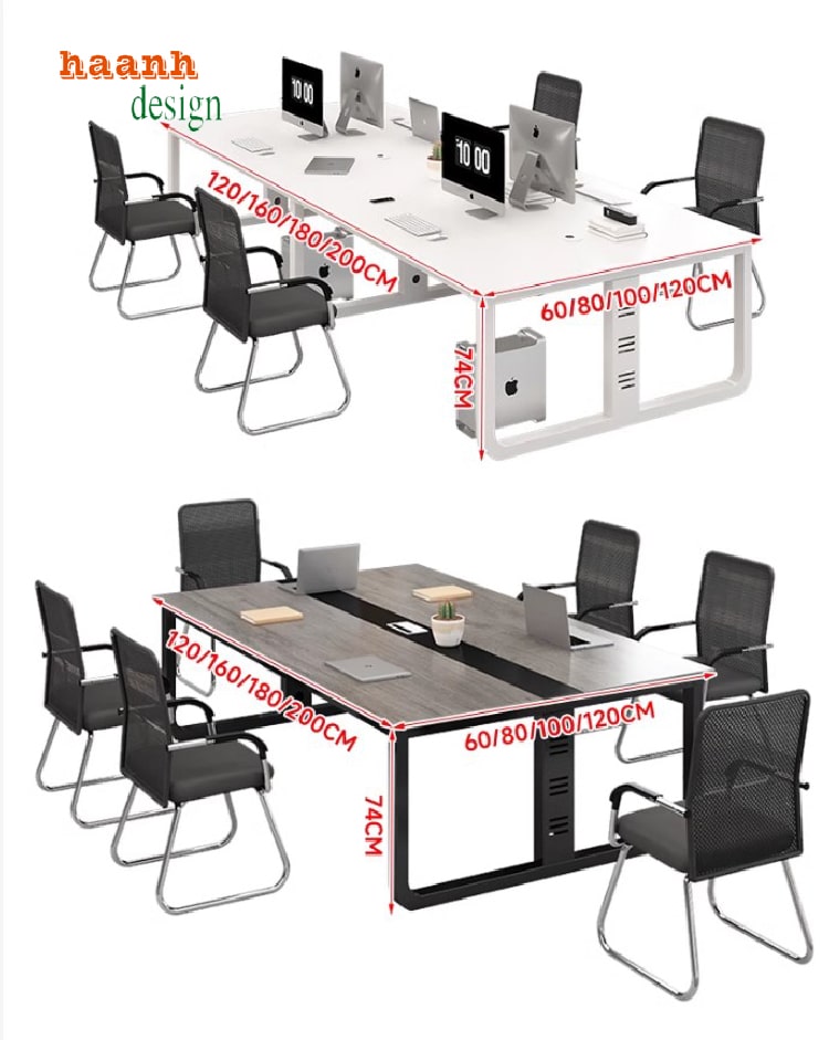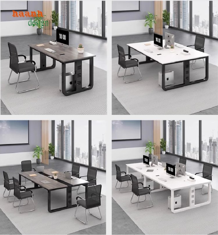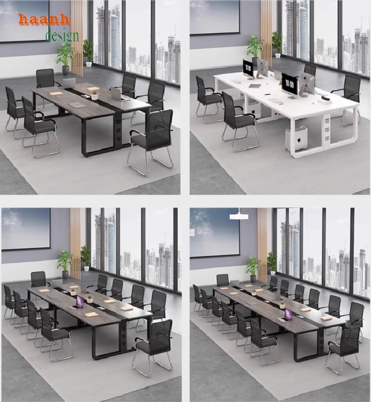 Bàn họp chân sắt thường được thiết kế với nhiều phong cách khác nhau, từ hiện đại đến cổ điển, để phù hợp với nhu cầu và sở thích của từng khách hàng. Các mẫu mã đa dạng cùng với màu sắc nổi bật giúp cho bàn họp này trở thành điểm nhấn cho không gian văn phòng.