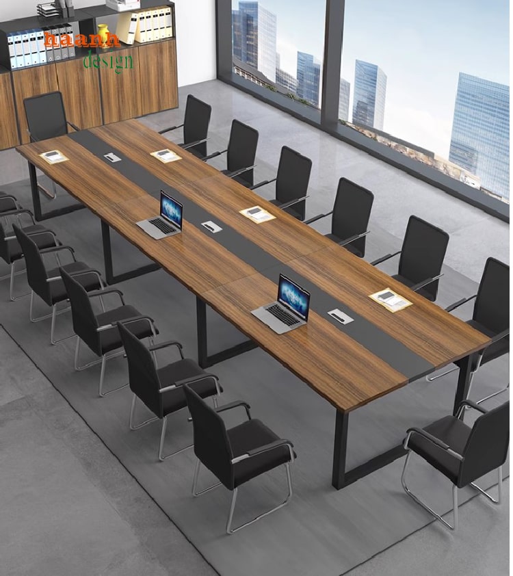Một trong những điều thú vị về bàn họp chân sắt mặt gỗ công nghiệp là tính linh hoạt trong thiết kế. Bạn có thể dễ dàng di chuyển bàn đến nhiều vị trí khác nhau trong văn phòng mà không lo bị hỏng hóc. Điều này rất hữu ích khi công ty tổ chức các sự kiện đặc biệt hoặc cần thay đổi bố trí nội thất thường xuyên.
