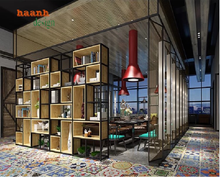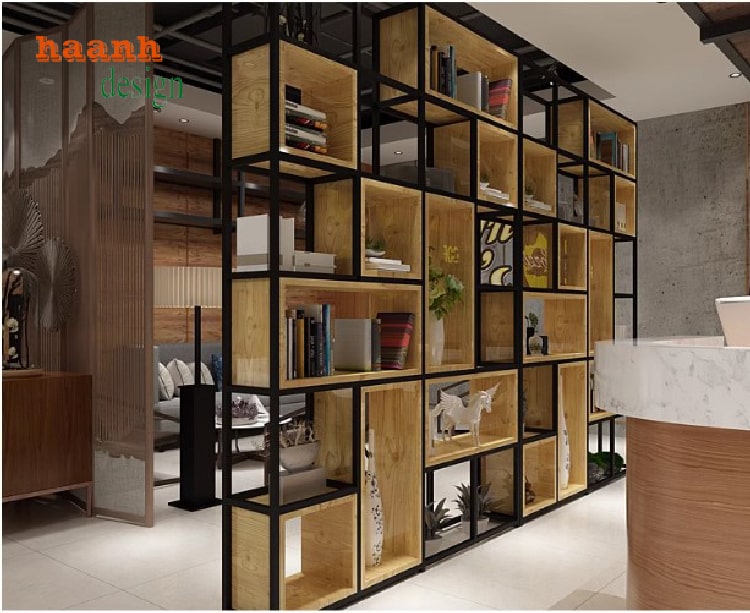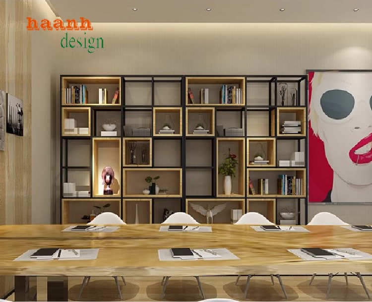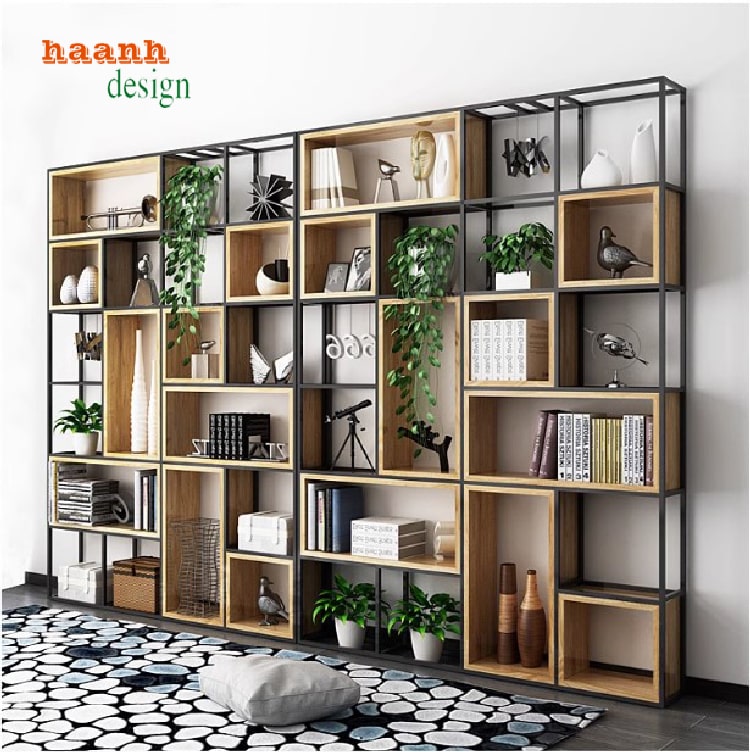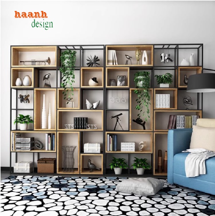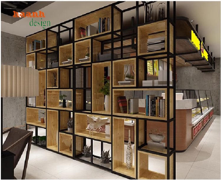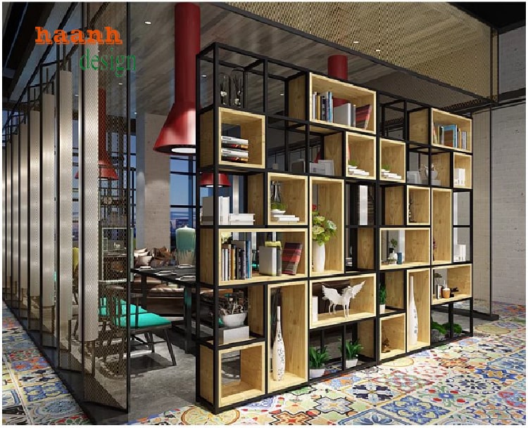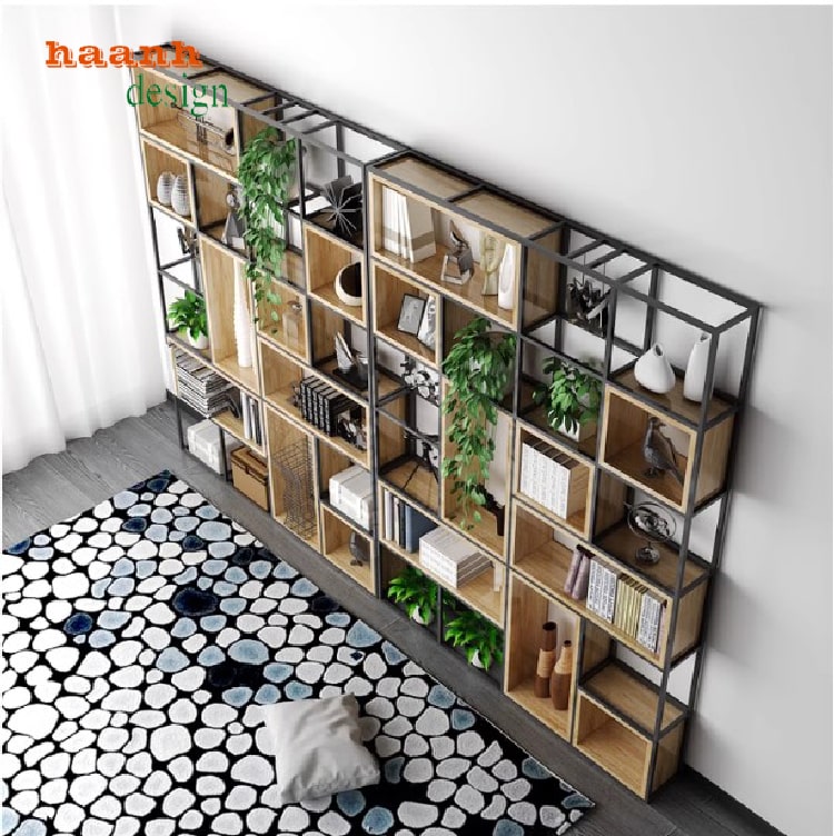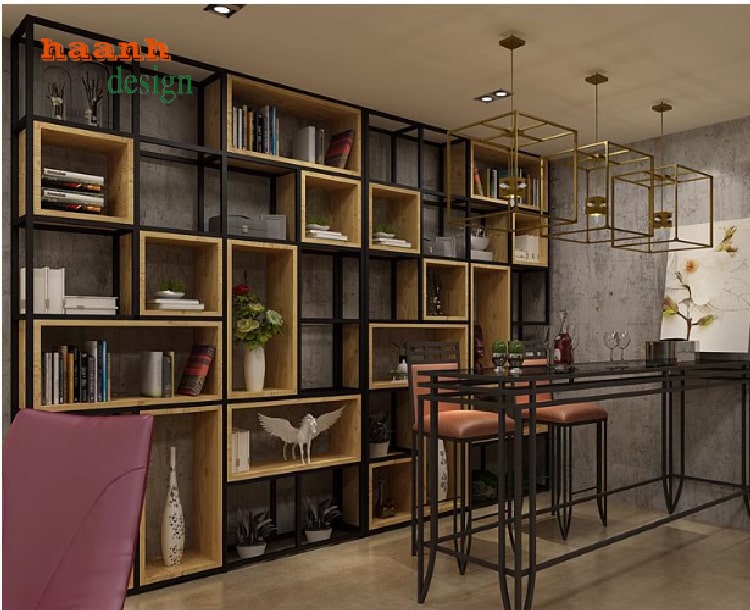 Bố trí kệ khung sắt mặt gỗ là một yếu tố quan trọng tạo nên sự hài hòa cho không gian: