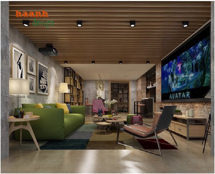 Phong cách công nghiệp với thiết kế thô, mạnh mẽ, thường sử dụng gam màu tối.