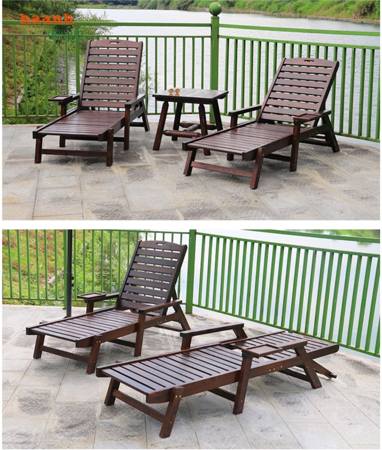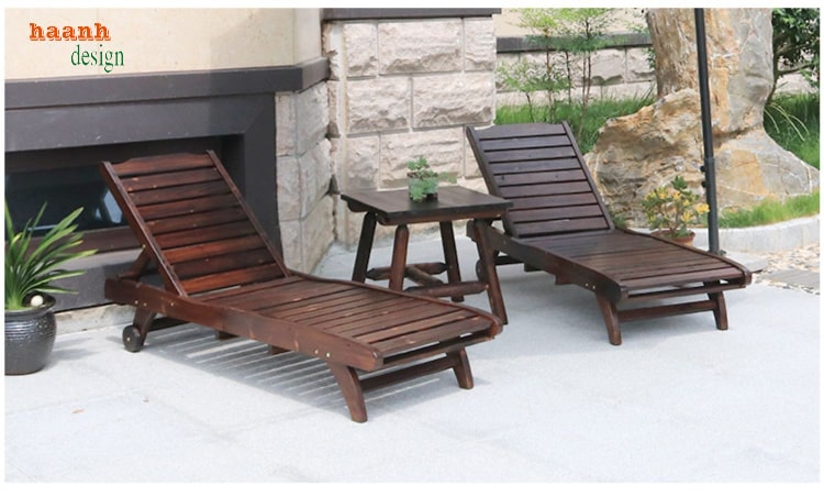 Ngoài ra, việc kết hợp giường tắm nắng bằng gỗ cùng với những món đồ ngoại thất khác như bàn, ghế hay ghế sofa sẽ tạo ra một không gian thư giãn hoàn hảo cho gia đình và bạn bè.