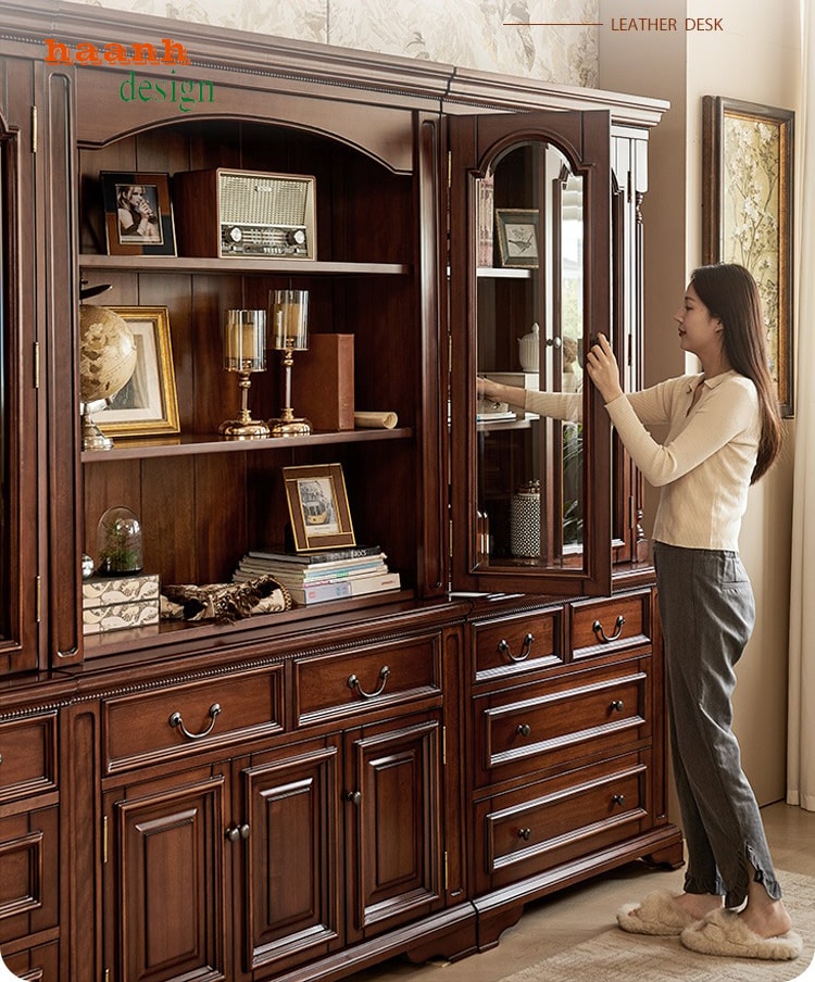 Ngoài ra, kệ sách gỗ tân cổ điển cũng có thể được chế tác theo yêu cầu riêng, phù hợp với kích thước và phong cách của từng không gian sống. Điều này giúp khách hàng có nhiều sự lựa chọn hơn, từ đó tạo ra một sản phẩm hoàn hảo nhất cho gia đình mình.