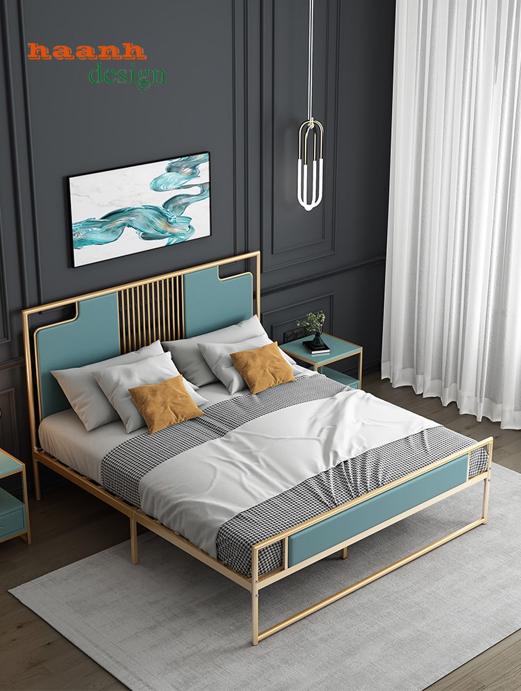 - Kiểu giường ngủ sắt với đầu giường bằng gỗ: Đây là một kiểu giường kết hợp giữa vật liệu sắt và gỗ, tạo ra một vẻ đẹp hài hòa và sang trọng. Với phong cách thiết kế đơn giản nhưng tinh tế, kiểu giường này thường được chọn cho các phòng ngủ có không gian rộng và cần một món đồ nội thất đặc biệt để tạo điểm nhấn.