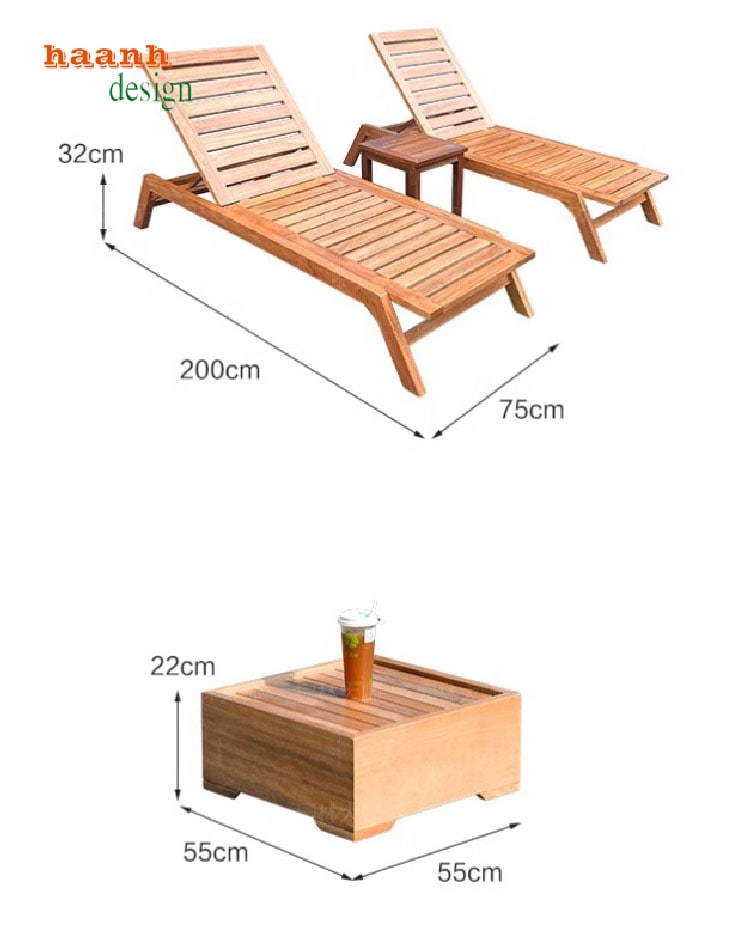 | Giường thư giãn kết hợp bàn | Gỗ teak | 210 x 100 cm | Tích hợp bàn trà | 11 triệu |