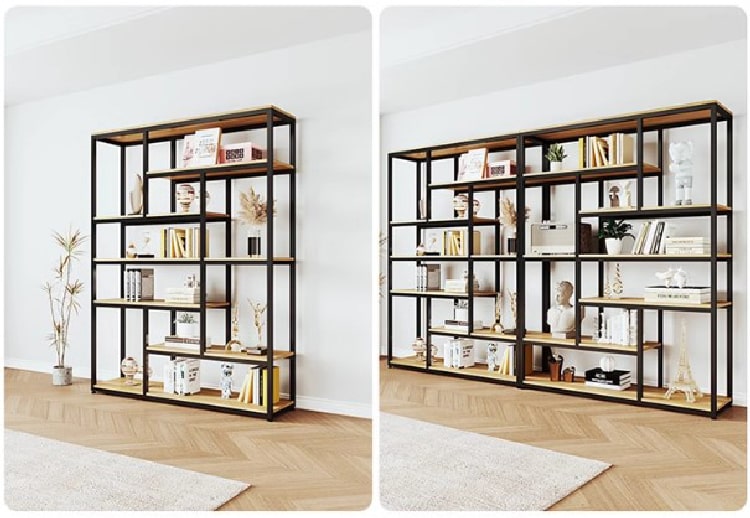 Nhiều cửa hàng, quán cafe hay showroom lựa chọn kệ sắt gỗ làm kệ trưng bày sản phẩm, nhờ vào sự nổi bật, cuốn hút và tính đa năng. Thiết kế dễ di chuyển, dễ phối hợp với các nội thất khác cũng là điểm cộng lớn.