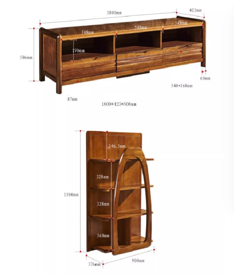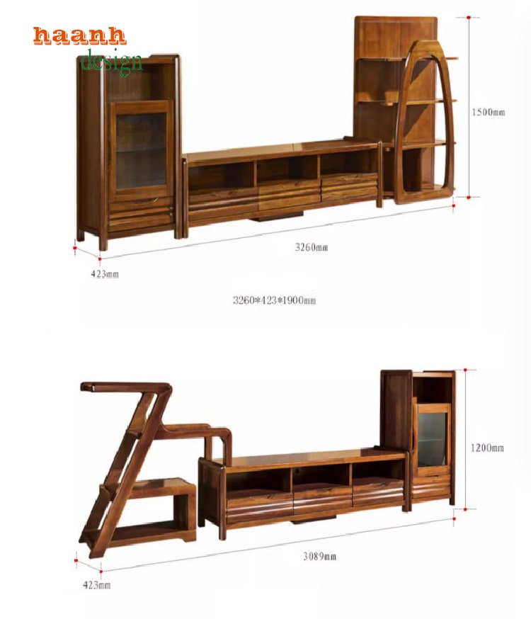 Một kệ tivi gỗ hiện đại thường gồm: