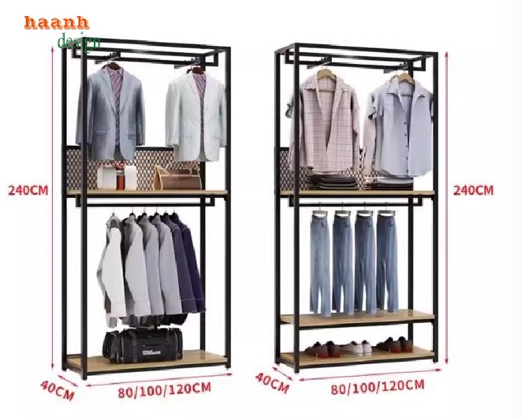 Kệ treo quần áo bằng sắt được thiết kế tối giản nhưng vẫn đảm bảo tính thẩm mỹ cao, phù hợp với các phong cách nội thất từ hiện đại, tối giản cho đến công nghiệp.
