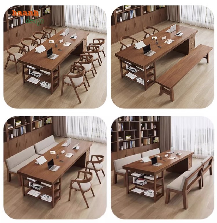 Khi chọn lựa thiết kế cho bàn ghế phòng họp gỗ tự nhiên, bạn cần cân nhắc đến nhiều yếu tố như diện tích phòng họp, số lượng thành viên tham gia và mục đích sử dụng. Một chiếc bàn hình chữ nhật lớn có thể phù hợp cho những cuộc họp lớn, trong khi bàn tròn lại thích hợp cho những cuộc thảo luận nhỏ và thân mật.