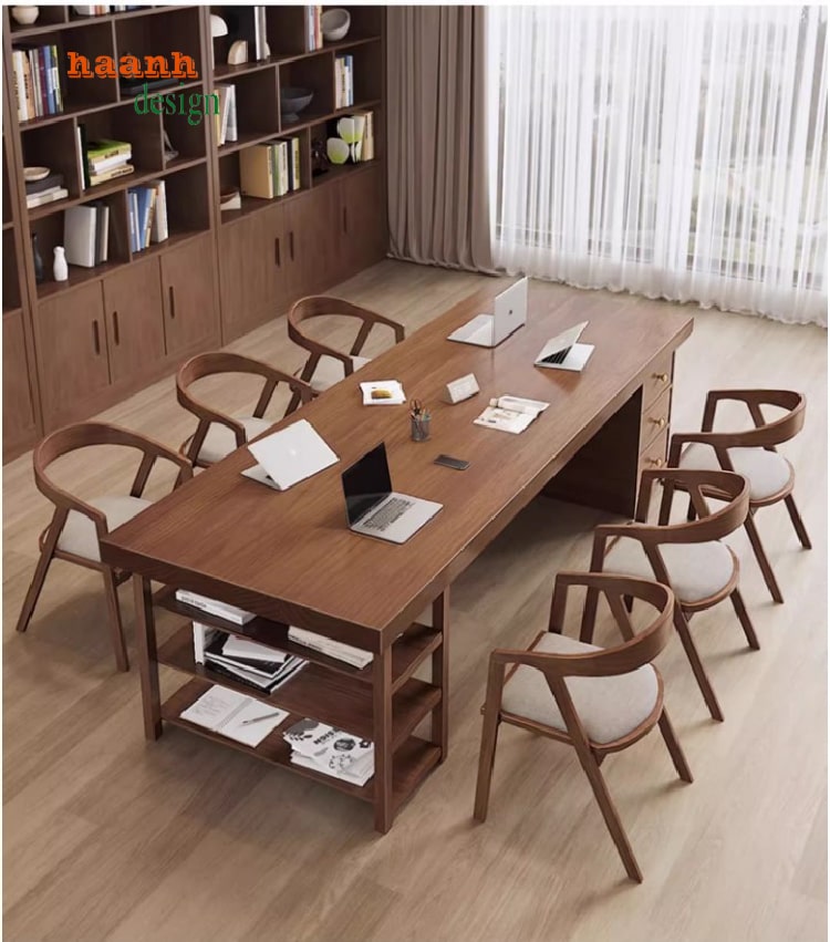 Trong xu hướng thiết kế hiện đại, bàn họp gỗ tự nhiên cao cấp thường được thiết kế theo kiểu dáng tối giản nhưng vẫn giữ được sự sang trọng. Các đường nét mạch lạc, kết hợp với gam màu trầm ấm của gỗ tự nhiên, tạo nên không gian làm việc trang nhã và thanh lịch.