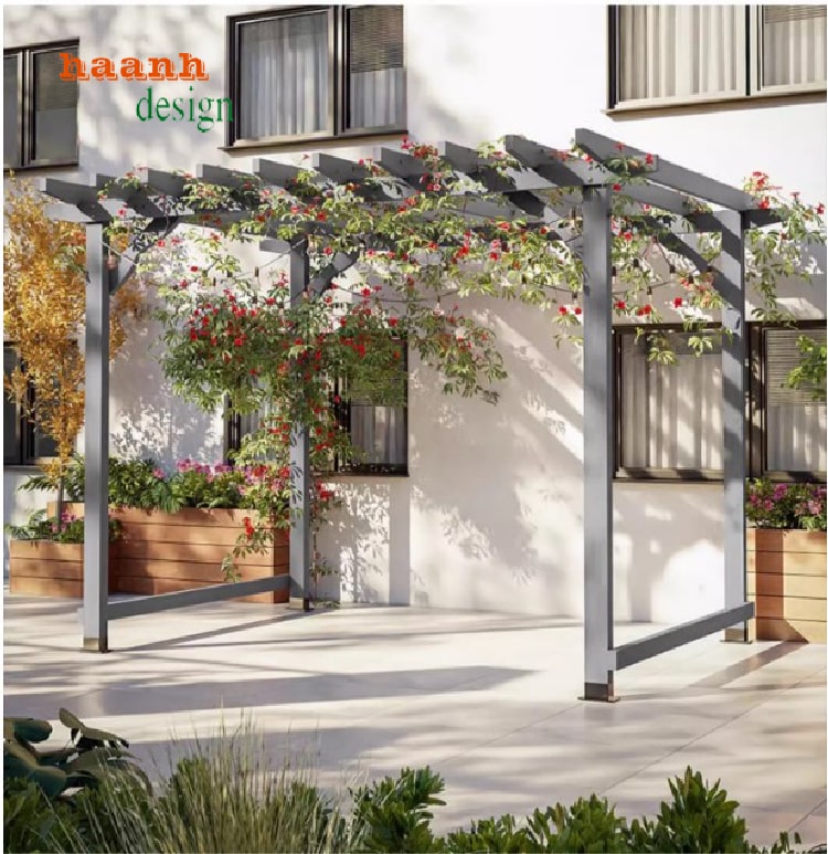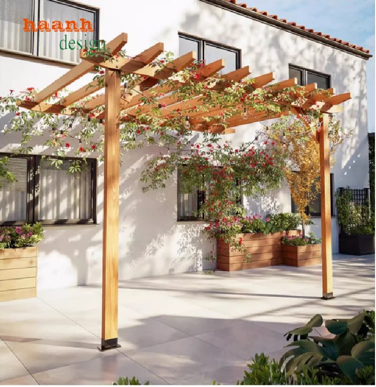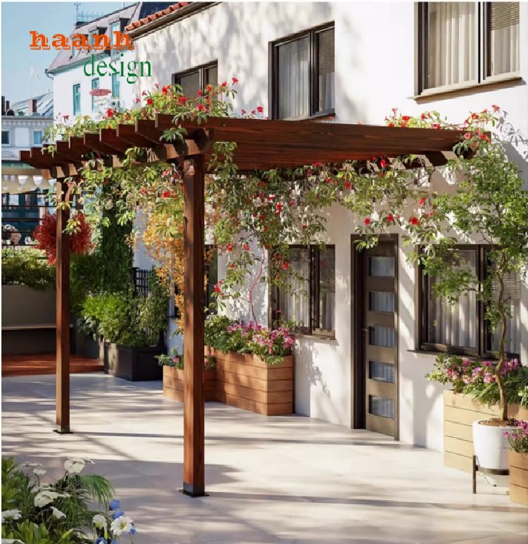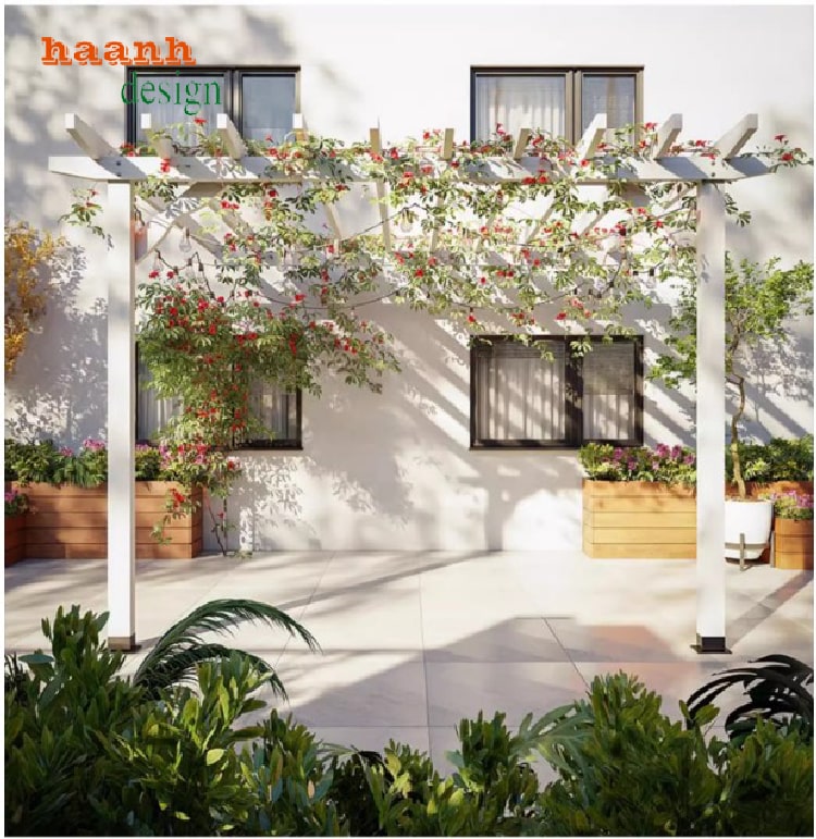 - Giàn hoa: Một giàn hoa bằng gỗ được bố trí hợp lý sẽ giúp nâng cao vẻ đẹp cho khu vườn của bạn, đồng thời tạo nơi cho các loại hoa leo phát triển.